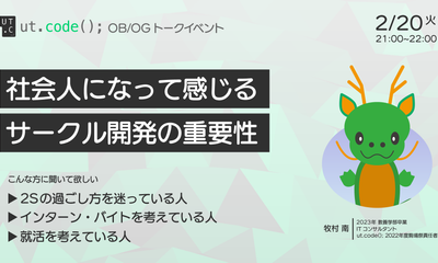 ut.code(); では、2 月 20 日に OB / OG トークイベントを開催しました。今回は 2023 年度に卒業した牧村南さん(仮名)に「社会人になっ...